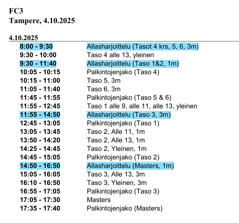 Tervetuloa seuraamaan uimahyppy kilpailua Kalevan uimahalliin 4.10. lauantaina! Mukana on 160 hyppääjää yhdeksästä eri seurasta ja hyppääjiä voi nähdä aina 5-vuotiaista yli 70-vuotiaisiin! Sisäänpääsy…